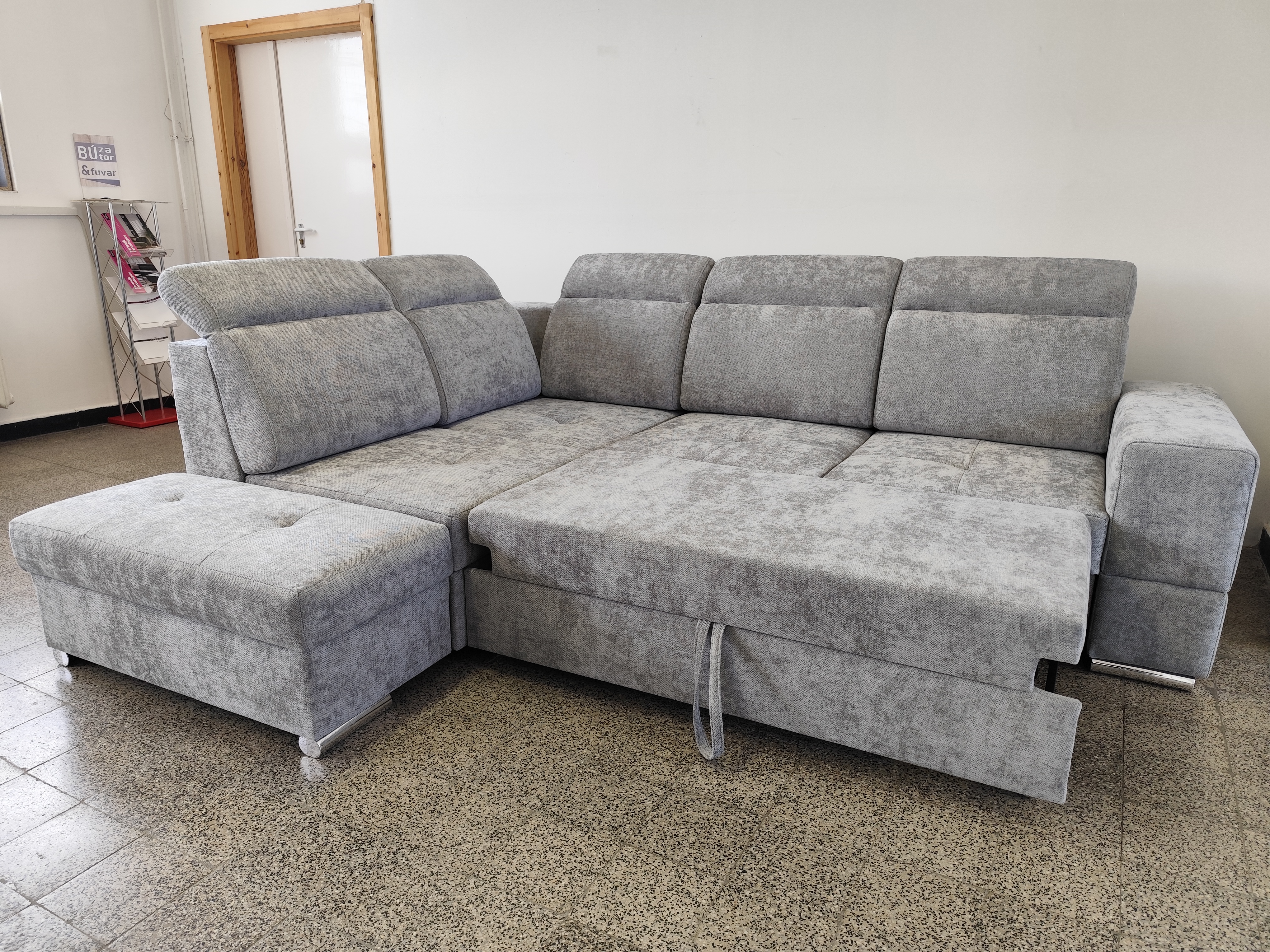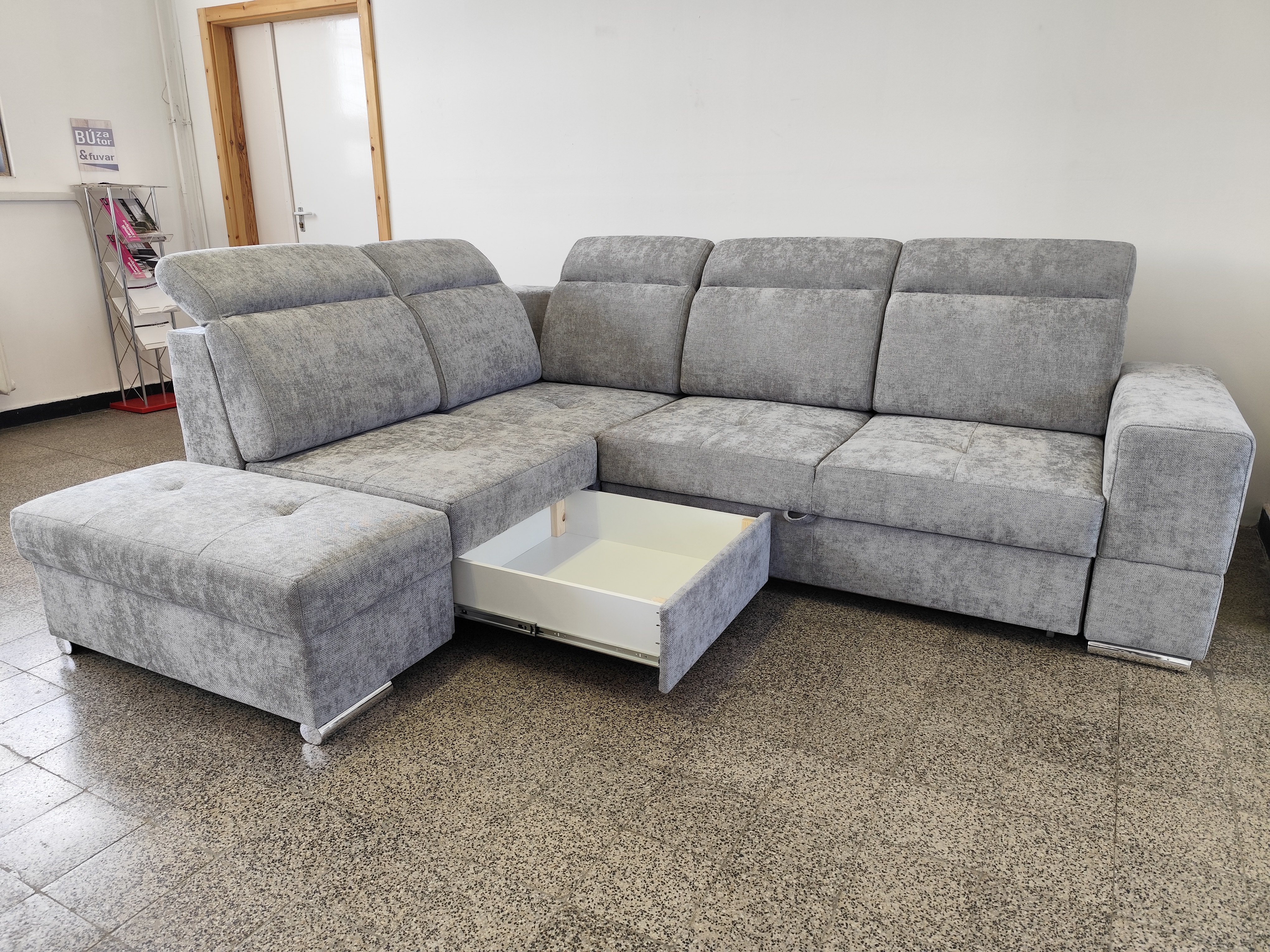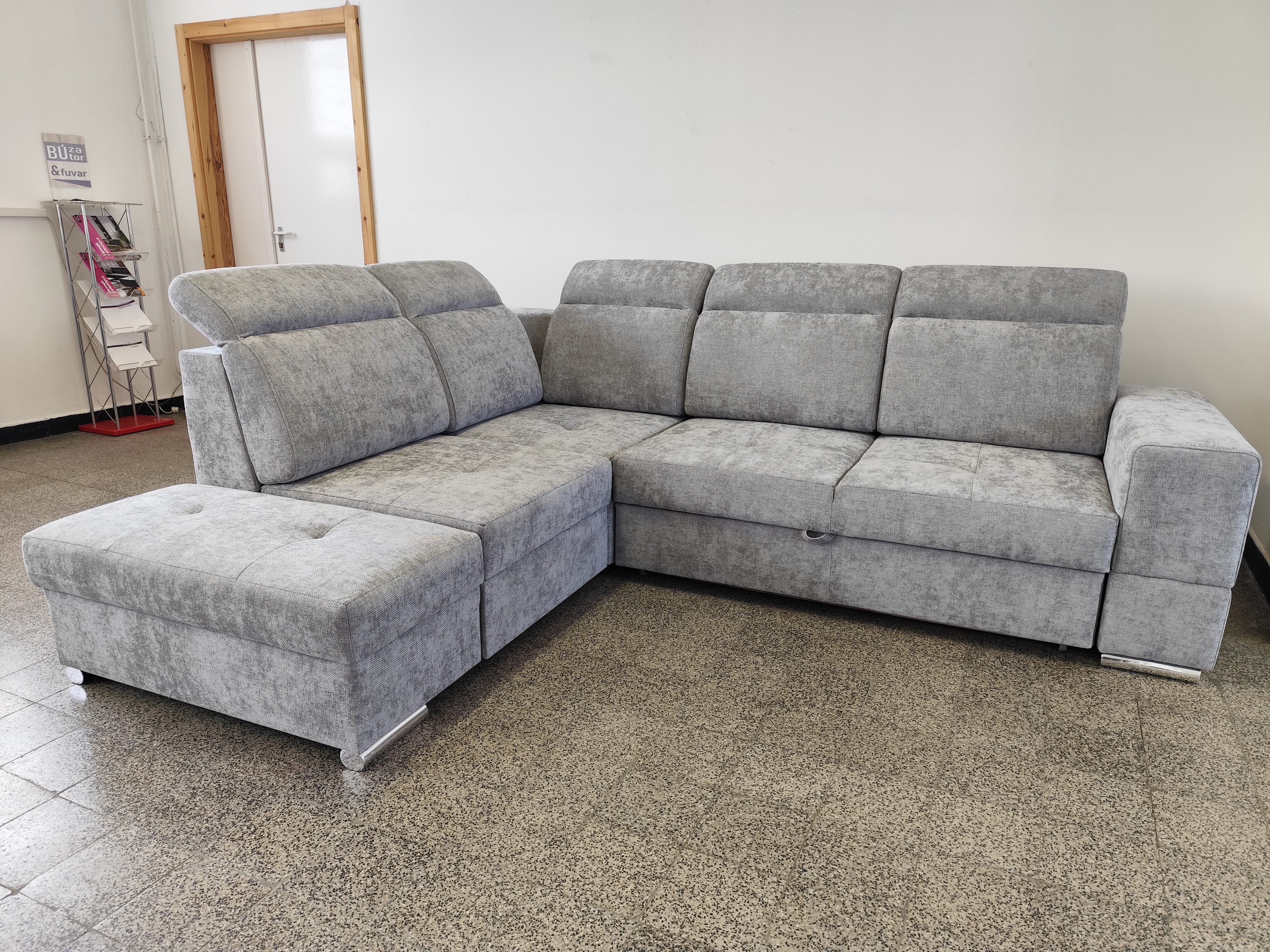 Az Amado sarokülő modern és igazán trendi sarokülőink egyike. Szövetes kárpitozása négyféle színben rendelhető, mely közül biztosan megtalálhatjuk az otthonunk stílusához leginkább illő darabot. Nemcsak ülőgarnitúra, hiszen több funkcióval is rendelkezik: ágyneműtartója extra tárolóhelyet biztosít, továbbá ágyazható, ezért a vendégek fogadására is kiválóan alkalmas. A termék különlegessége, hogy állítható fejtámlái vannak, ami pihenés közben, felhajtott állapotban, kényelmesen megtámasztja a fejet. A termék hátulja is szövet borítású, így akár egy nappali közepén is jól mutat. Univerzális állású, tehát jobbos és balos állásban is összeszerelhető, ami nagy előnyt jelenthet például egy szoba átrendezésénél. A sarokülő szürke színben tekinthető meg Bemutatótermünkben.