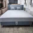 Az Anatol szürke színű franciaágy letisztult formájával és visszafogott színével nagyon jó választás lehet bármilyen hálószobába. Az ágy fekvőfelülete extra rugós kivitelezésű, melynek jellemzője, hogy nagy teherbíró képességgel rendelkezik és gyorsan reagál a ülőhelyzet változására. Ezzel a rugóval ellátott bútoroknak nagyszerű a szellőzése, emiatt nem tud a nedvesség felhalmozódni. 10 cm-es króm lábbal rendelkezik, mely amellett, hogy mutatós két praktikus szerepet is betölt: egyrészt megnöveli az ülőmagasságot, másrészt könnyen tisztíthatóvá válik az ágy alatti padló is. Beépített ágyneműtartójához egyszerű hozzáférni és méretei miatt kényelmesen elférnek benne az ágyneműk, takarók. A magas, párnázott fejtámlája tökéletes pihenést biztosít, melyhez két ajándék párna is jár. Az ágy 160x200 cm-es méretben, világosszürke - középszürke színkombinációban bemutatótermünkben megtekinthető.