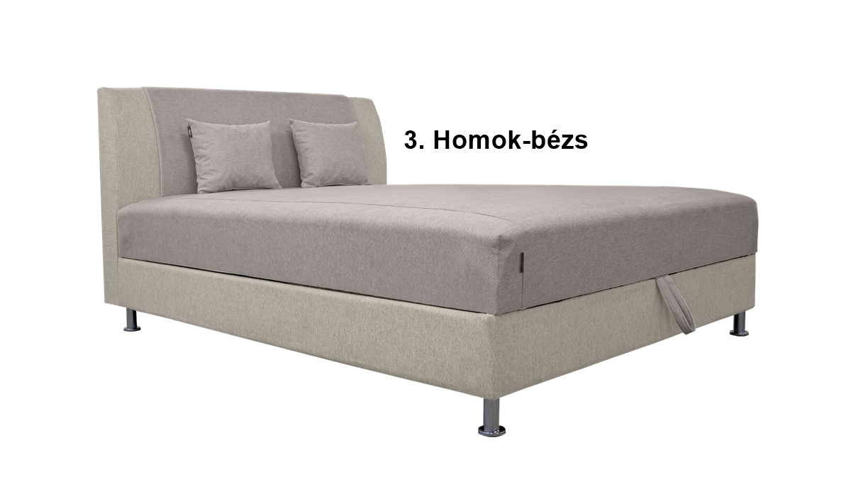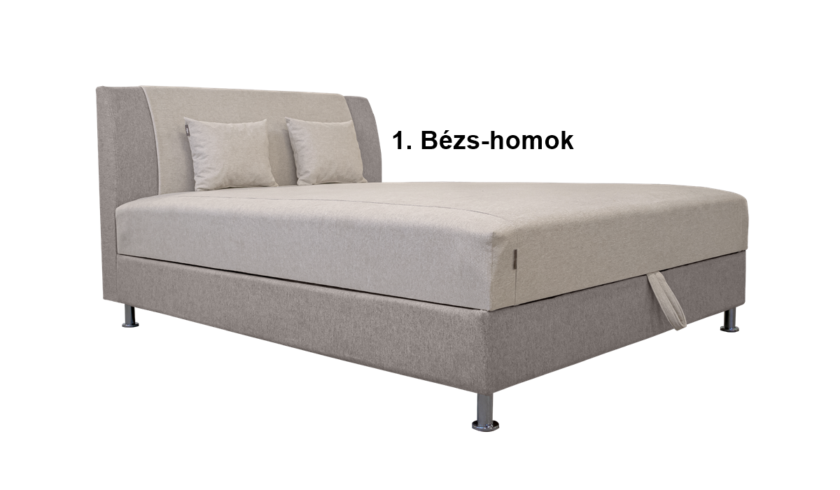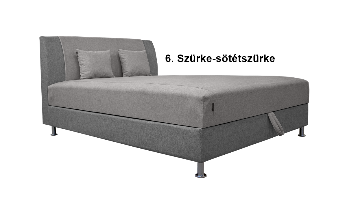 Az Anatol franciaágy letisztult formájával és visszafogott színeivel nagyon jó választás lehet bármilyen hálószobába. Az ágy fekvőfelülete extra rugós kivitelezésű, melynek jellemzője, hogy nagy teherbíró képességgel rendelkezik és gyorsan reagál a ülőhelyzet változására. Ezzel a rugóval ellátott bútoroknak nagyszerű a szellőzése, emiatt nem tud a nedvesség felhalmozódni. 10 cm-es króm lábbal rendelkezik, mely amellett, hogy mutatós két praktikus szerepet is betölt: egyrészt megnöveli az ülőmagasságot, másrészt könnyen tisztíthatóvá válik az ágy alatti padló is. Beépített ágyneműtartójához egyszerű hozzáférni és méretei miatt kényelmesen elférnek benne az ágyneműk, takarók. A magas, párnázott fejtámlája tökéletes pihenést biztosít, melyhez két ajándék párna is jár. Az ágy kizárólag 160x200 cm-es méretben rendelhető.