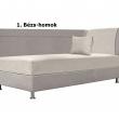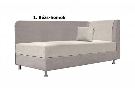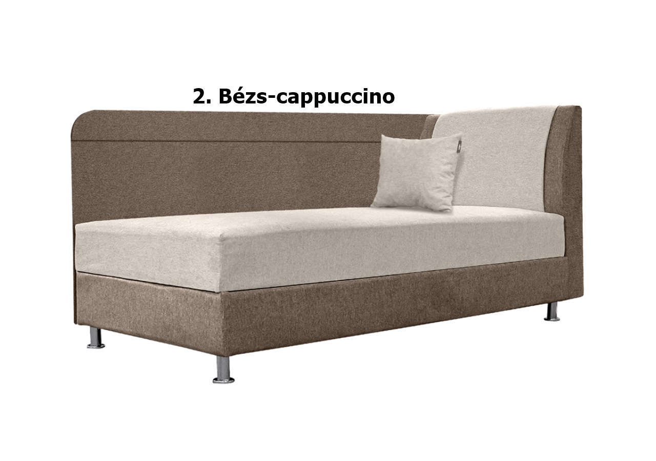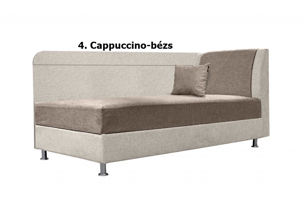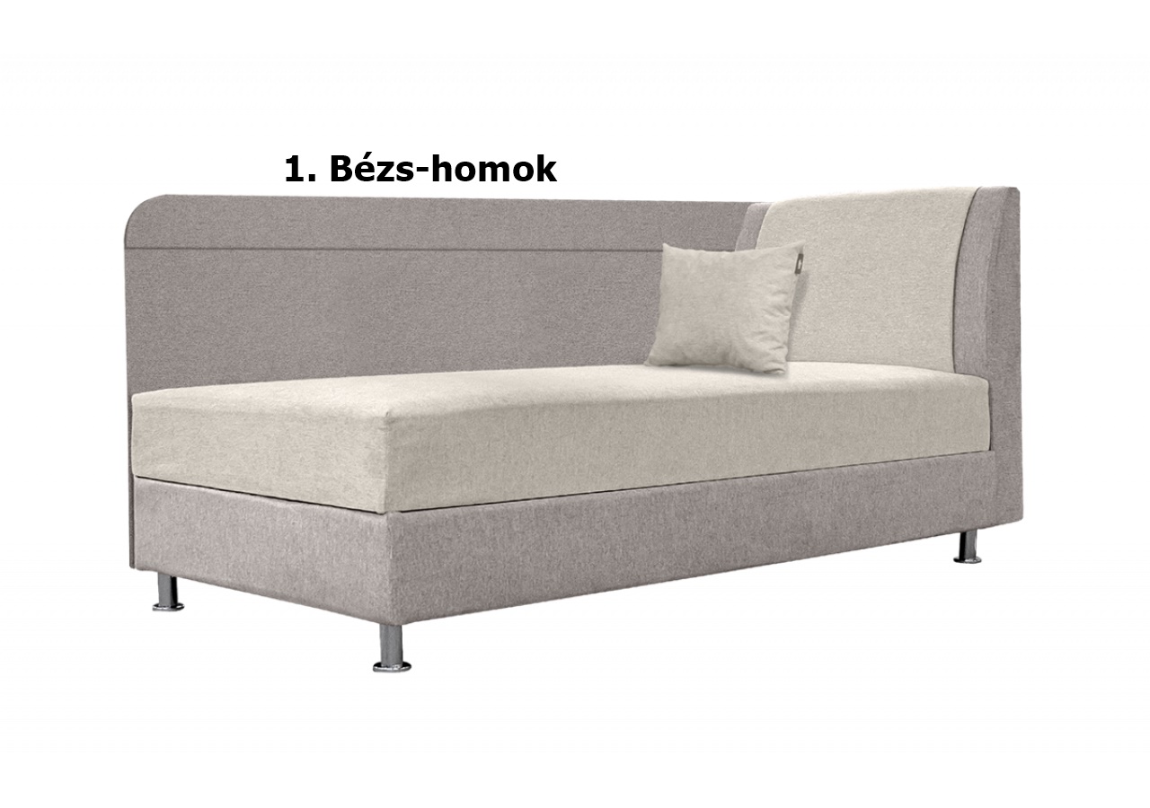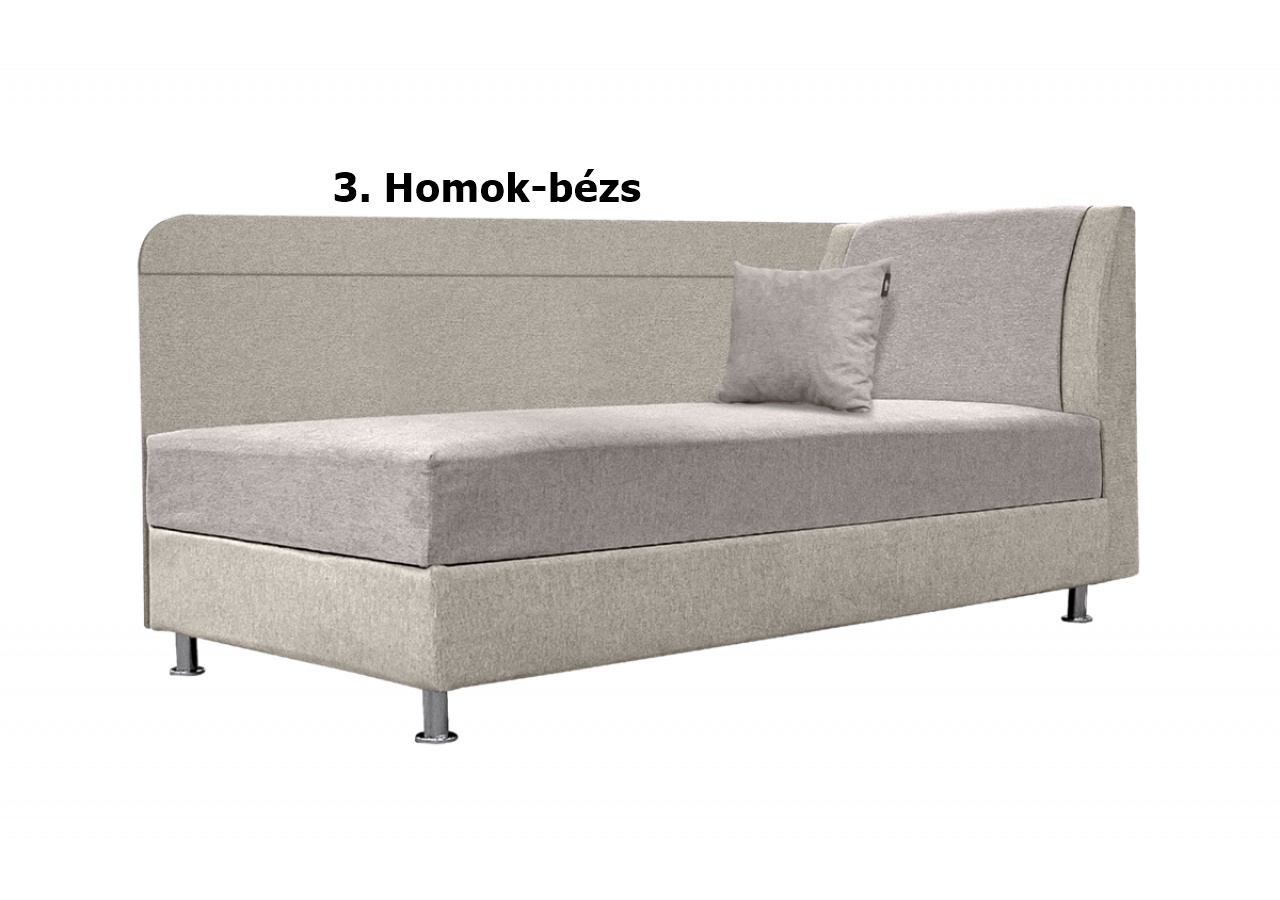 Az Anatol sarokheverő letisztult formájával és visszafogott színeivel nagyon jó választás lehet bármilyen hálószobába. A heverő fekvőfelülete extra rugós kivitelezésű, melynek jellemzője, hogy nagy teherbíró képességgel rendelkezik és gyorsan reagál a ülőhelyzet változására. Ezzel a rugóval ellátott bútoroknak nagyszerű a szellőzése, emiatt nem tud a nedvesség felhalmozódni. Az ágy puha tapintású plüss kárpitot kapott, mely amellett, hogy vízlepergető technológiával készült, magas kopás- és fényállósággal is rendelkezik. Az anyag gyermekek és csecsemők számára is biztonságos, bőrbarát nem okoz irritációt. 10 cm-es króm lábbal rendelkezik, mely amellett, hogy mutatós két praktikus szerepet is betölt: egyrészt megnöveli az ülőmagasságot, másrészt könnyen tisztíthatóvá válik az ágy alatti padló is. Beépített ágyneműtartójában kényelmesen elférnek az ágyneműk, takarók. A párnázott fejtámlája tökéletes pihenést biztosít, melyhez ajándék párna is jár. A heverő kizárólag 90x200 cm-es méretben rendelhető. Jobbos és balos állásban is kérhető, melyhez utolsó képünk nyújt segédletet.