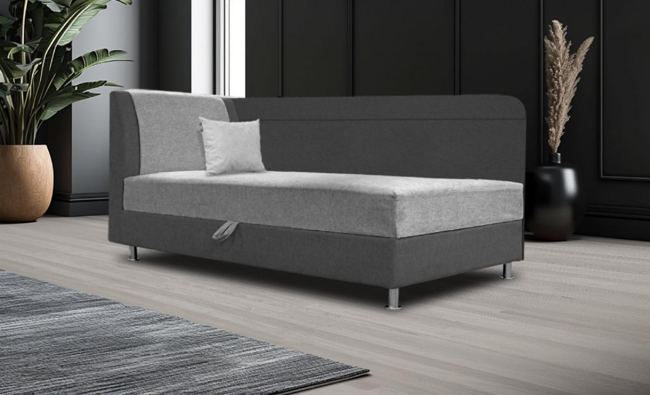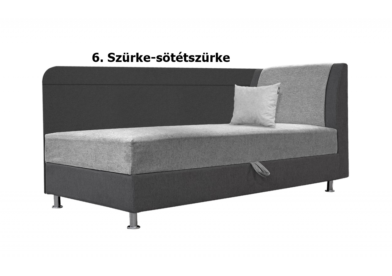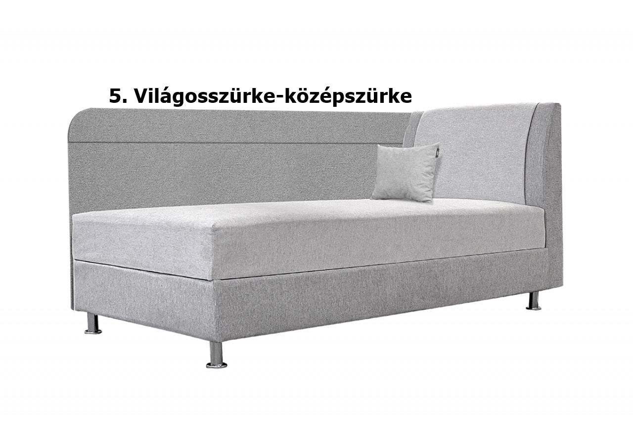 Az Anatol II. sarokheverő letisztult formájával és visszafogott színeivel nagyon jó választás lehet bármilyen hálószobába. A heverő fekvőfelülete extra rugós kivitelezésű, melynek jellemzője, hogy nagy teherbíró képességgel rendelkezik és gyorsan reagál a ülőhelyzet változására. Ezzel a rugóval ellátott bútoroknak nagyszerű a szellőzése, emiatt nem tud a nedvesség felhalmozódni. Az ágy puha tapintású plüss kárpitot kapott, mely amellett, hogy vízlepergető technológiával készült, magas kopás- és fényállósággal is rendelkezik. Az anyag gyermekek és csecsemők számára is biztonságos, bőrbarát nem okoz irritációt. 10 cm-es króm lábbal rendelkezik, mely amellett, hogy mutatós két praktikus szerepet is betölt: egyrészt megnöveli az ülőmagasságot, másrészt könnyen tisztíthatóvá válik az ágy alatti padló is. Beépített ágyneműtartójában kényelmesen elférnek az ágyneműk, takarók. A párnázott fejtámlája tökéletes pihenést biztosít, melyhez ajándék párna is jár. A heverő kizárólag 110x200 cm-es méretben rendelhető. Jobbos és balos állásban is kérhető, melyhez utolsó képünk nyújt segédletet.