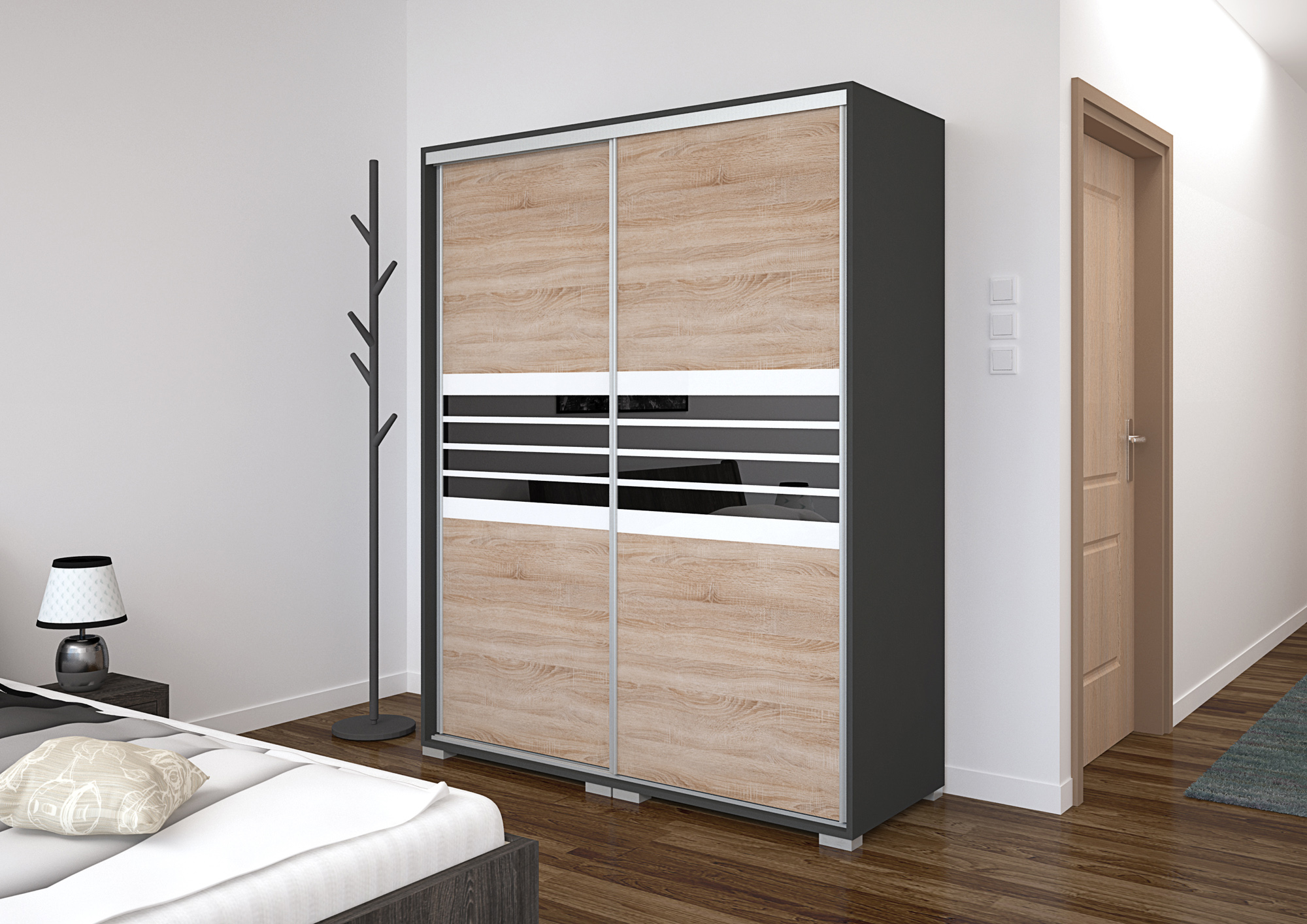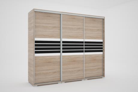A Bond gardrób fekete-fehér csíkos magasfényű betéttel a Bond tolóajtós termékcsalád legújabb tagja. A minőségi megoldások kedvelői is biztosan megtalálják a gardrób kínálatában a számukra megfelelő darabot, hiszen hatalmas méret- és színválaszték áll rendelkezésre: a 15 korpusz és a 15 ajtószín szabadon variálható egymással, melyhez egy designos fekete-fehér csíkozású magasfényű betét társul. Belső elrendezését tekintve teljesen személyre szabható, köszönhetően az akár egymásra is helyezhető fiókdobozoknak, a polcoknak és ruhatartó rudaknak, melyek külön is rendelhetőek a gardróbhoz. A gardrób tárolókapacitása is tovább bővíthető fiókos alsó és tolóajtós felső magasítókkal. A bútorlapos tolóajtók tükrös ajtókkal és fózolt tükrös ajtókkal (ajtónként 4 osztott tükör) egészíthetők ki, mely a tér növelését is elősegíti, illetve még dekoratívabbá teszi a bútort. A Bond gardrób további 6 magasfényű betétszínben ide kattintva megtekinthető.