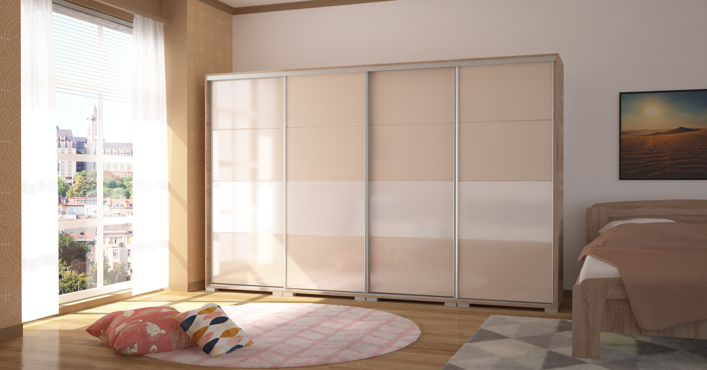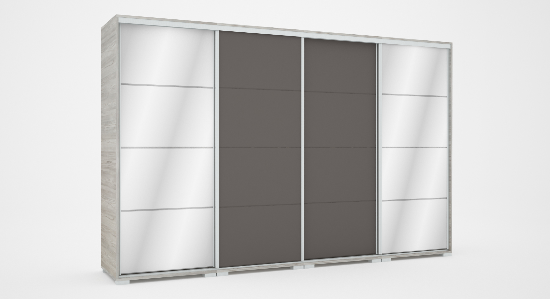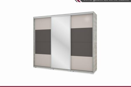 A bútor kérhető szürke, fehér vagy fekete profillak és lábbal is. A gardrób tárolókapacitása is tovább bővíthető fiókos alsó és tolóajtós felső magasítókkal vagy sarokpolccal.