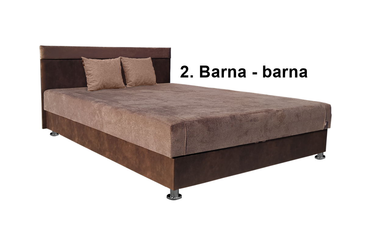 A Dusán franciaágy legújabb termékeink egyike. Letisztult, egyszerű formájának és időtálló színkombinációinak köszönhetően bármilyen stílusú szobába ideális választás. Az ágy fekvőfelülete extra rugós kivitelezésű, melynek jellemzője, hogy nagy teherbíró képességgel rendelkezik és gyorsan reagál az ülőhelyzet változására. Ezzel a rugóval ellátott bútoroknak nagyszerű a szellőzése, emiatt nem tud a nedvesség felhalmozódni. Beépített ágyneműtartójához egyszerű hozzáférni és méretei miatt kényelmesen elférnek benne az ágyneműk, takarók. Szövet kárpitozása kellemes tapintású, környezetbarát, könnyen tisztítható, göbösödés mentes, lélegző textil, melyet barna-bézs, barna-barna és szürke-szürke színekben lehet választani. A termékhez 2 db ajándék díszpárna is hozzátartozik. A franciaágy 140 és 160x200 cm-es méretben is rendelhető.