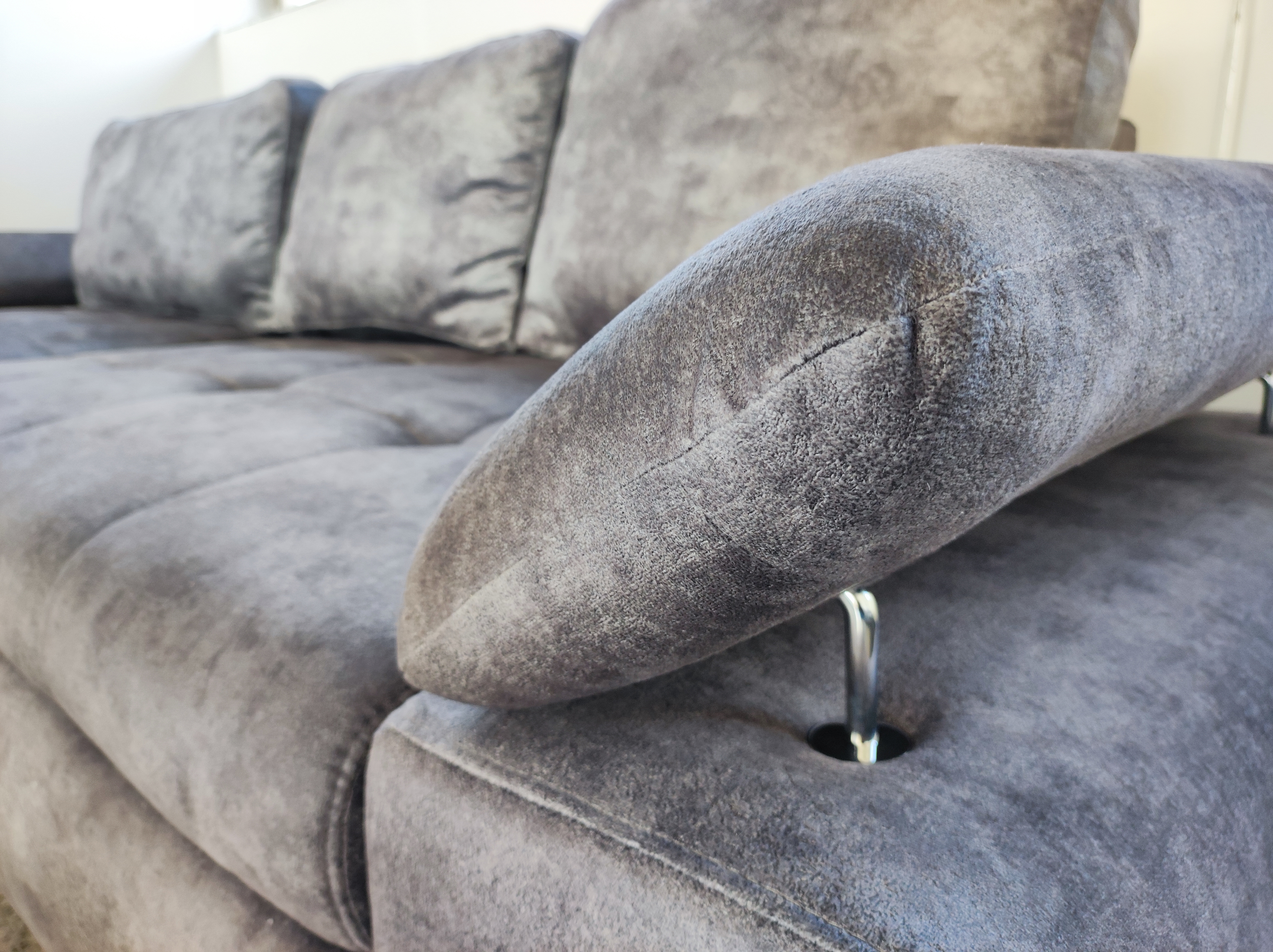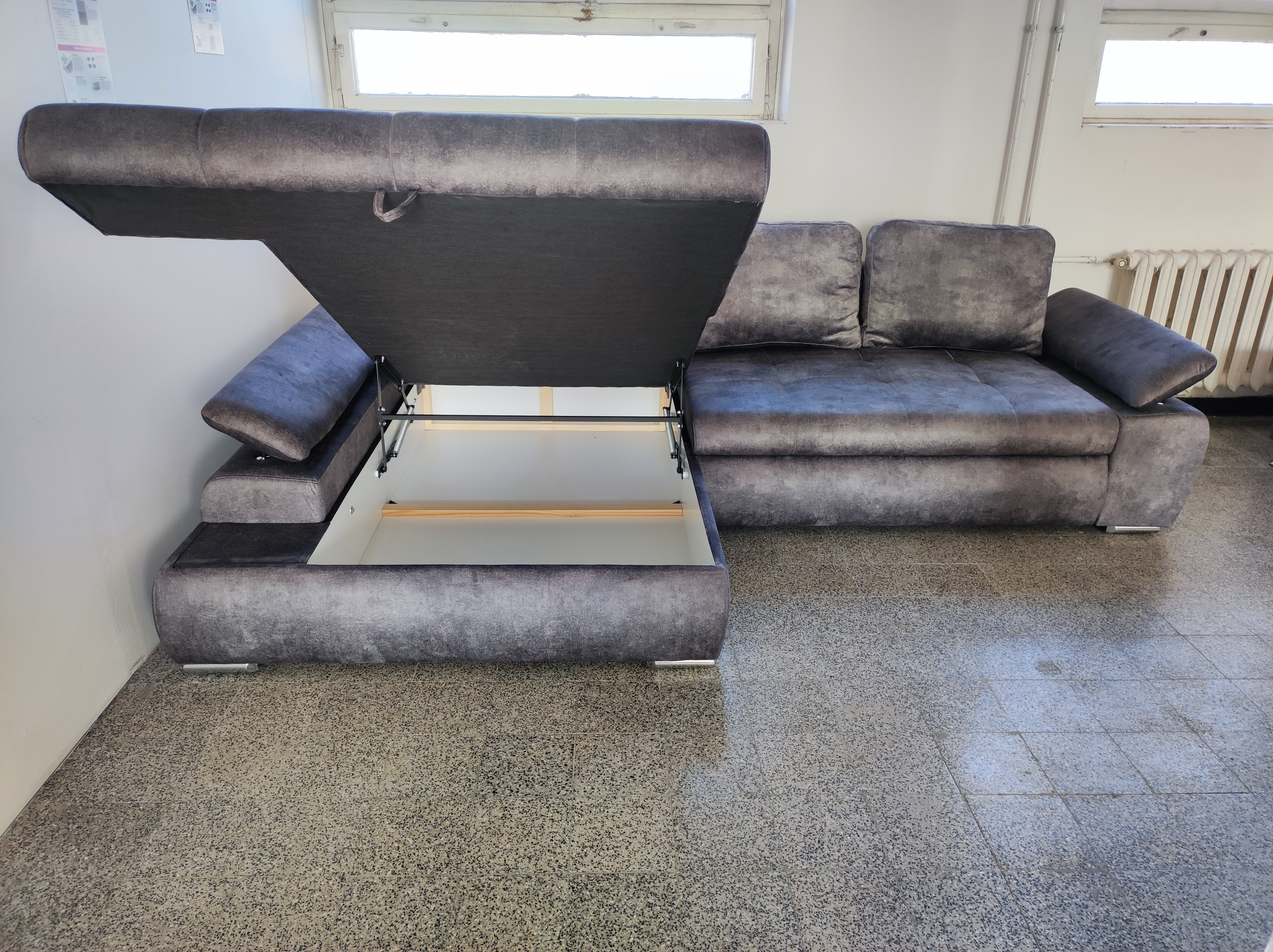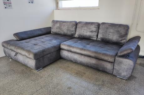 A Dutton sarokülőnél a stílusos megjelenés, a kényelem és a praktikusság egy termékben egyesül. Steppelt, szövetes kárpitozása ötféle színben elérhető, melynek visszafogott árnyalatai modern eleganciát kölcsönöznek az ülőgarnitúrának. A termék különlegessége, hogy állítható kartámlákkal rendelkezik, melyek a kényelmes pihenéshez járulnak hozzá, míg az ülőfelület hullámrugós kialakítása a bútor tartósságát biztosítja. Nemcsak ülőgarnitúraként állja meg a helyét, hiszen több funkcióval is rendelkezik: ágyneműtartója értékes tárolóhelyet jelent, továbbá ágyazható, ezért a vendégek elszállásolására is tökéletes megoldást jelent. Ággyá alakítva a sarokülő egy nagyméretű, kényelmes franciaágy hatását kelti, melynek teljes felülete hullámrugós kialakítást kapott. A termék hátulja is szövet borítású, így akár egy nappali közepén is jól mutat. Jobbos és balos állásban rendelhető. Bemutatótermünkben szürke színben és balos állásban tekinthető meg.