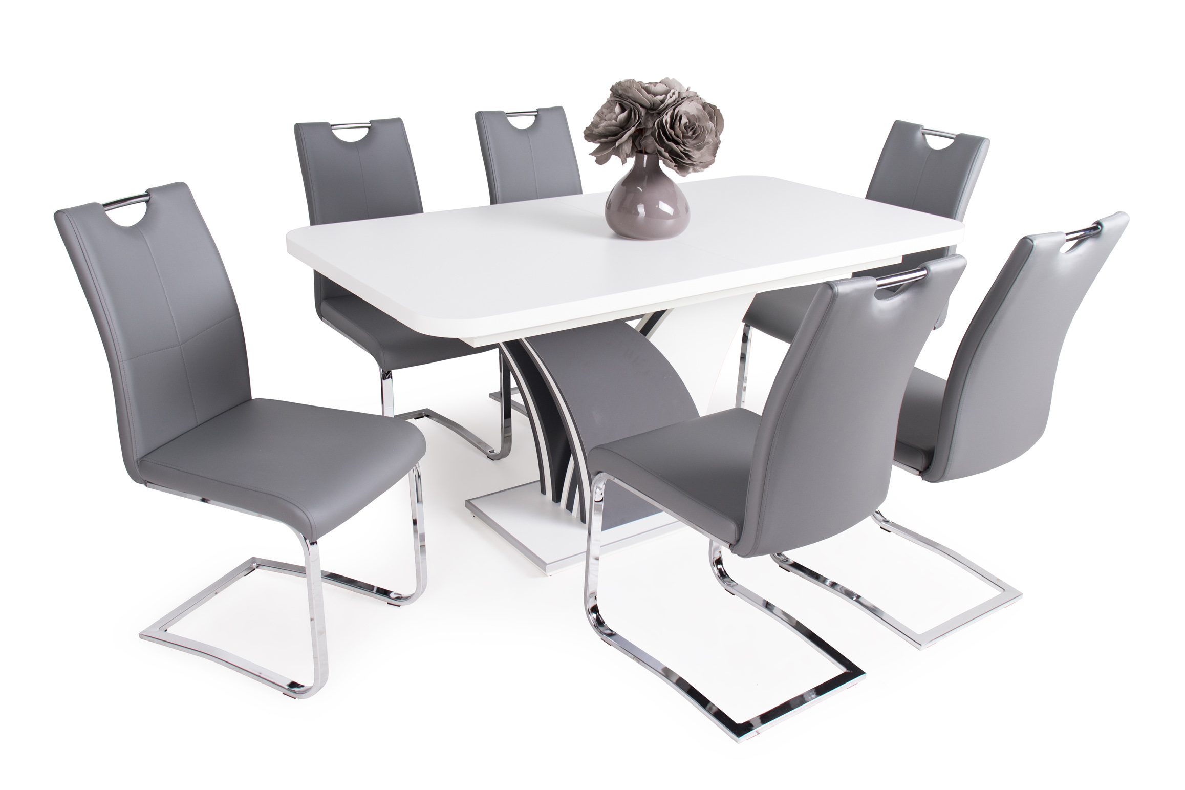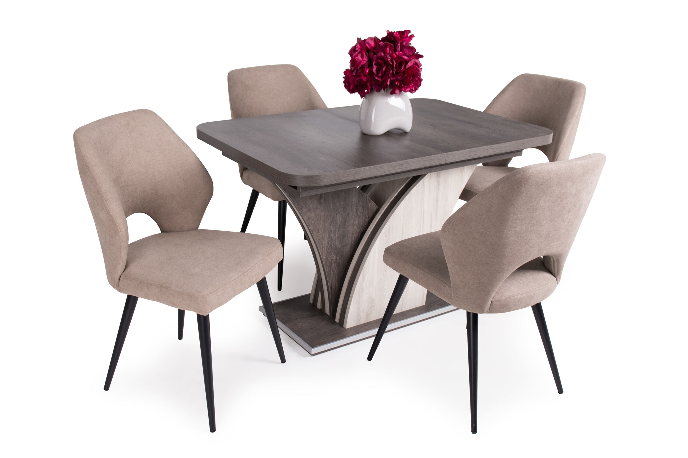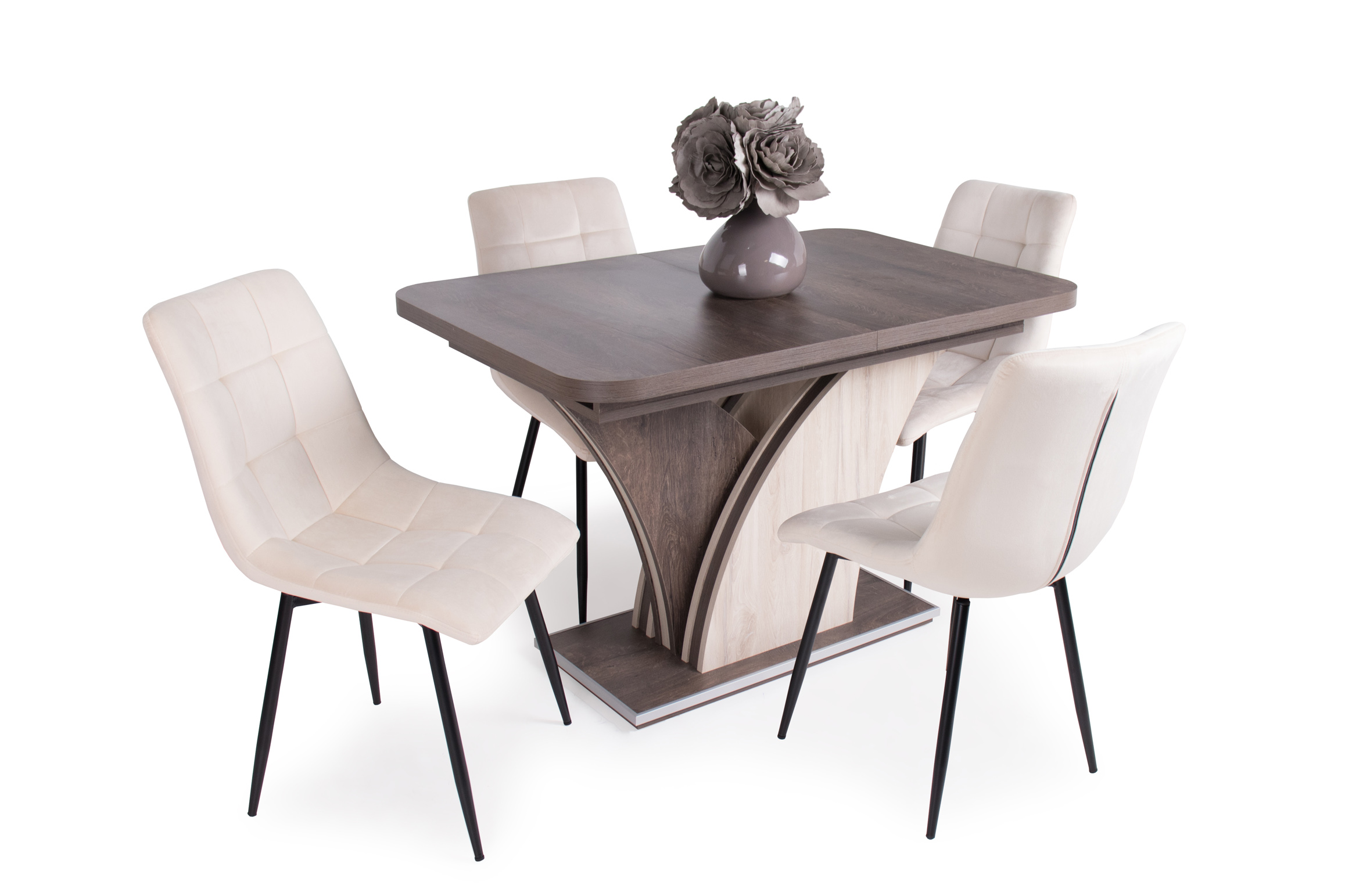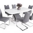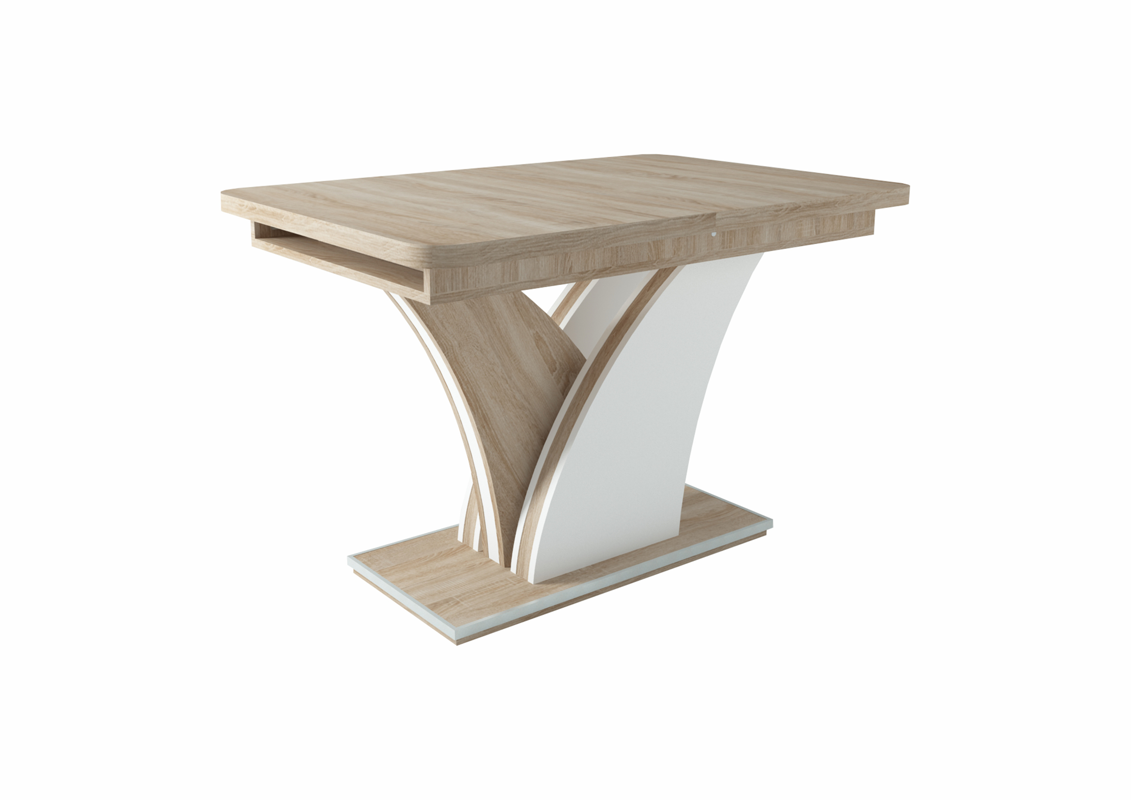 Ha trendi étkezőre vágyik az Enzo asztal igazán jó választás. Modern forma és kontrasztos színkombinációk jellemzik a terméket. 3 színkombináció közül választhatunk: fehér - matt sötétszürke, iszap tölgy - justus tölgy és sonoma tölgy - fehér. Az asztal 120 és 160 cm-es méretben rendelhető, mely vendégek fogadása esetén +40 cm-rel bővíthető.