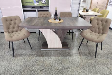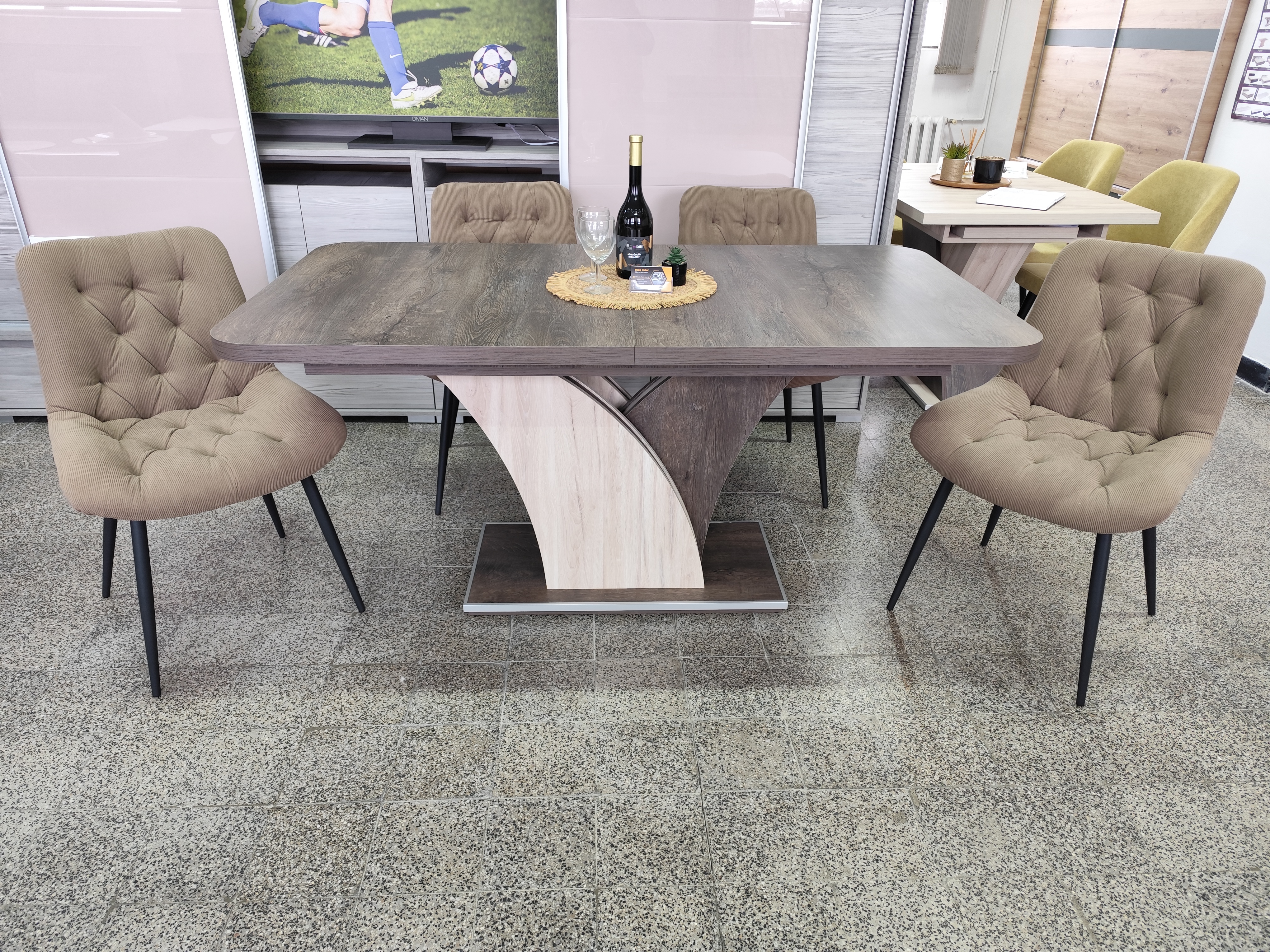 Ha trendi étkezőre vágyik ez az Enzo asztal igazán jó választás. Modern forma és kontrasztos színkombinációk jellemzik a Iszap tölgy és Justus tölgy bútorlapnak köszönhetően. 160x85 cm-es mérete plusz 40 cm-rel toldható, ami vendégek fogadása esetén kimondottan praktikus lehet.