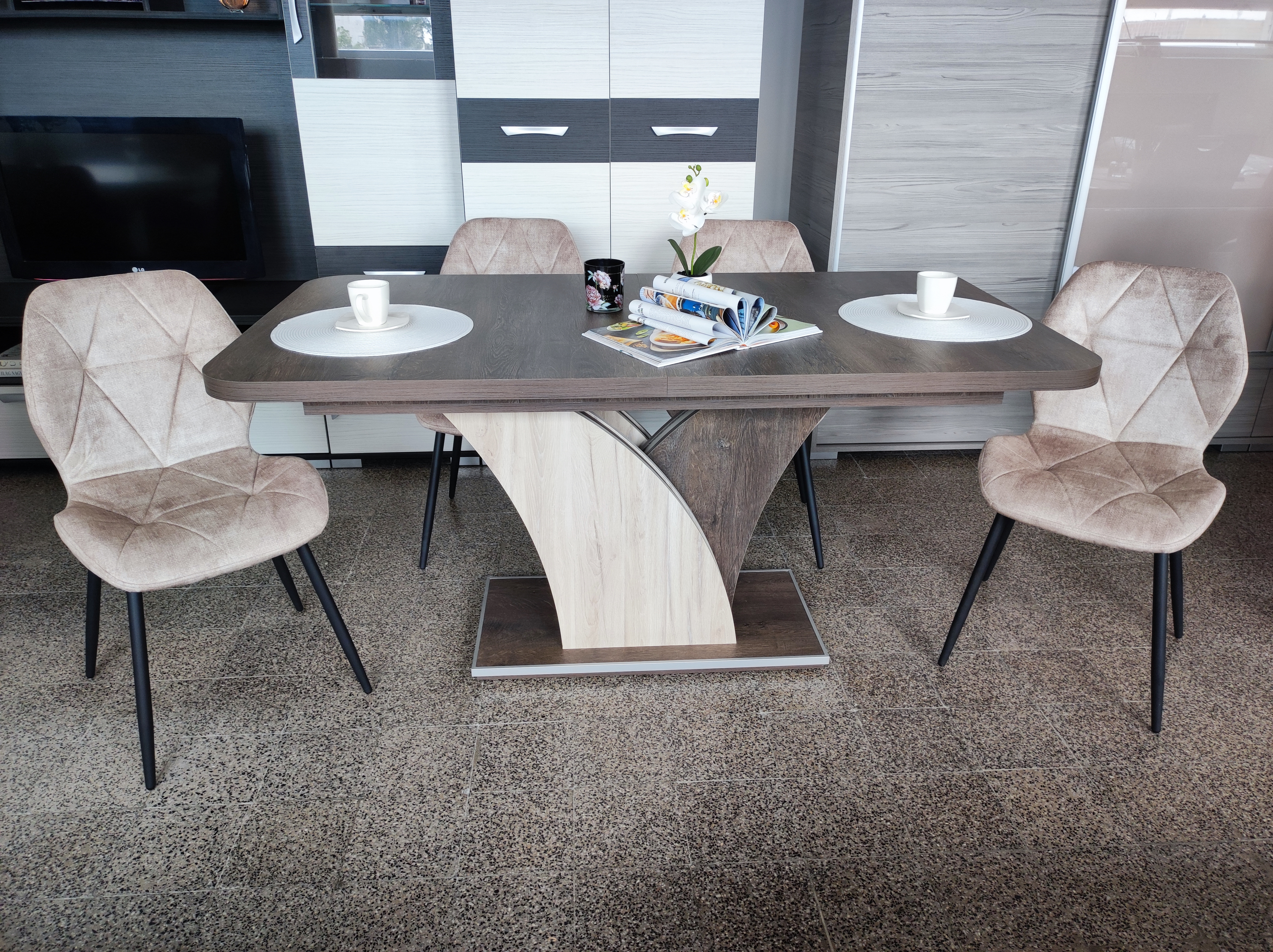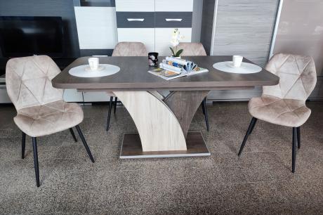 Ha trendi étkezőre vágyik ez az Enzo asztal igazán jó választás. Modern forma és kontrasztos színkombinációk jellemzik a Iszap tölgy és Justus tölgy bútorlapnak köszönhetően. 160x85 cm-es mérete plusz 40 cm-rel toldható, ami vendégek fogadása esetén kimondottan praktikus lehet.