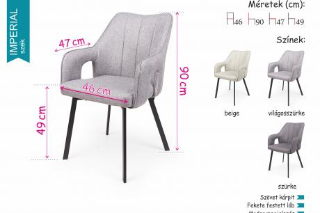 Az Imperial szék egyedi formavilága mindenki figyelmét felkelti. Fekete festett fém lábaival és különleges szövet kárpitjával kiválóan passzol a modern otthonokba. A szék a képen látható beige, világosszürke és szürke színben rendelhető.