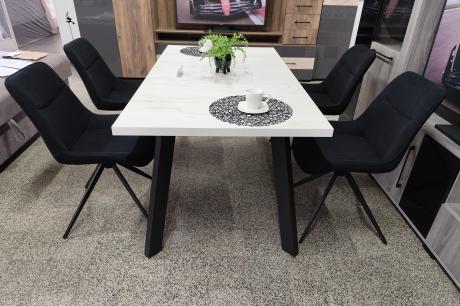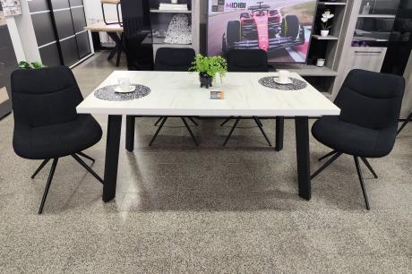 Az asztal 4 db Fox székkel egészül ki, mely fekete kordbársony kárpittal és fekete porfestett fém lábbakkal készült. Különlegessége, hogy 180 fokban elforgatható automata rendszerrel rendelkezik, amely visszaáll a kiindulási helyzetbe, ezzel segítve az asztalhoz való leülést és felállást. Az étkezőgarnitúra ideális választás azoknak, akik az időtálló és egyben stílusos darabokat részesítik előnyben.