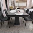 Az asztal 4 db Kamil székkel egészül ki, mely fekete porfestett fém lábával, szürke színű kárpitozásával kiválóan passzol a magasfényű Flóra asztalhoz. Az étkezőgarnitúra ideális választás azoknak, akik az időtálló és egyben stílusos darabokat részesítik előnyben.