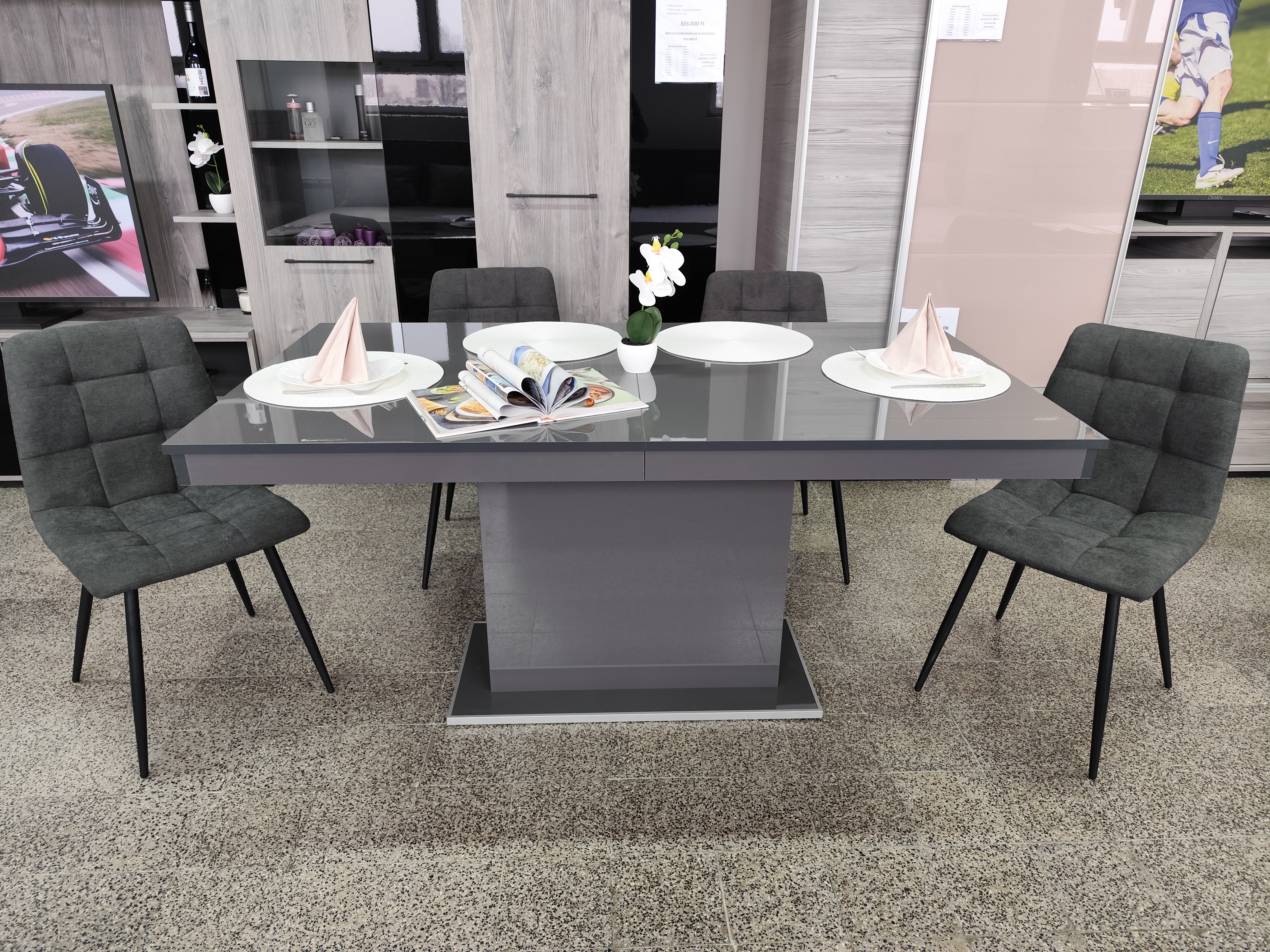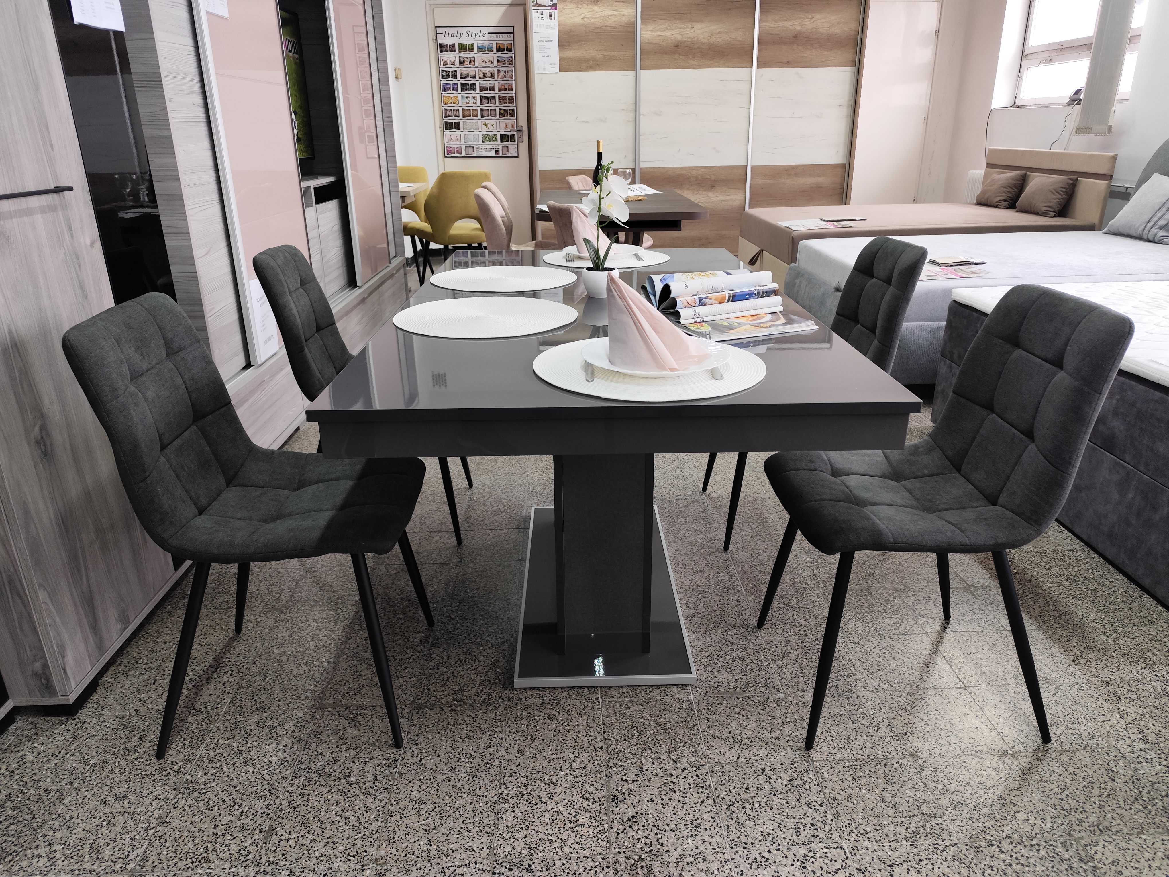 Ha trendi és látványos étkezőre vágyik az antracit színű, magasfényű Flóra asztal igazán jó választás. A váz, az asztallap és a vendéglap is magasfényű, amely remekül illik a letisztult formavilághoz. 160x85 cm-es mérete plusz 40 cm-rel toldható, ami vendégek fogadása esetén kimondottan praktikus lehet.