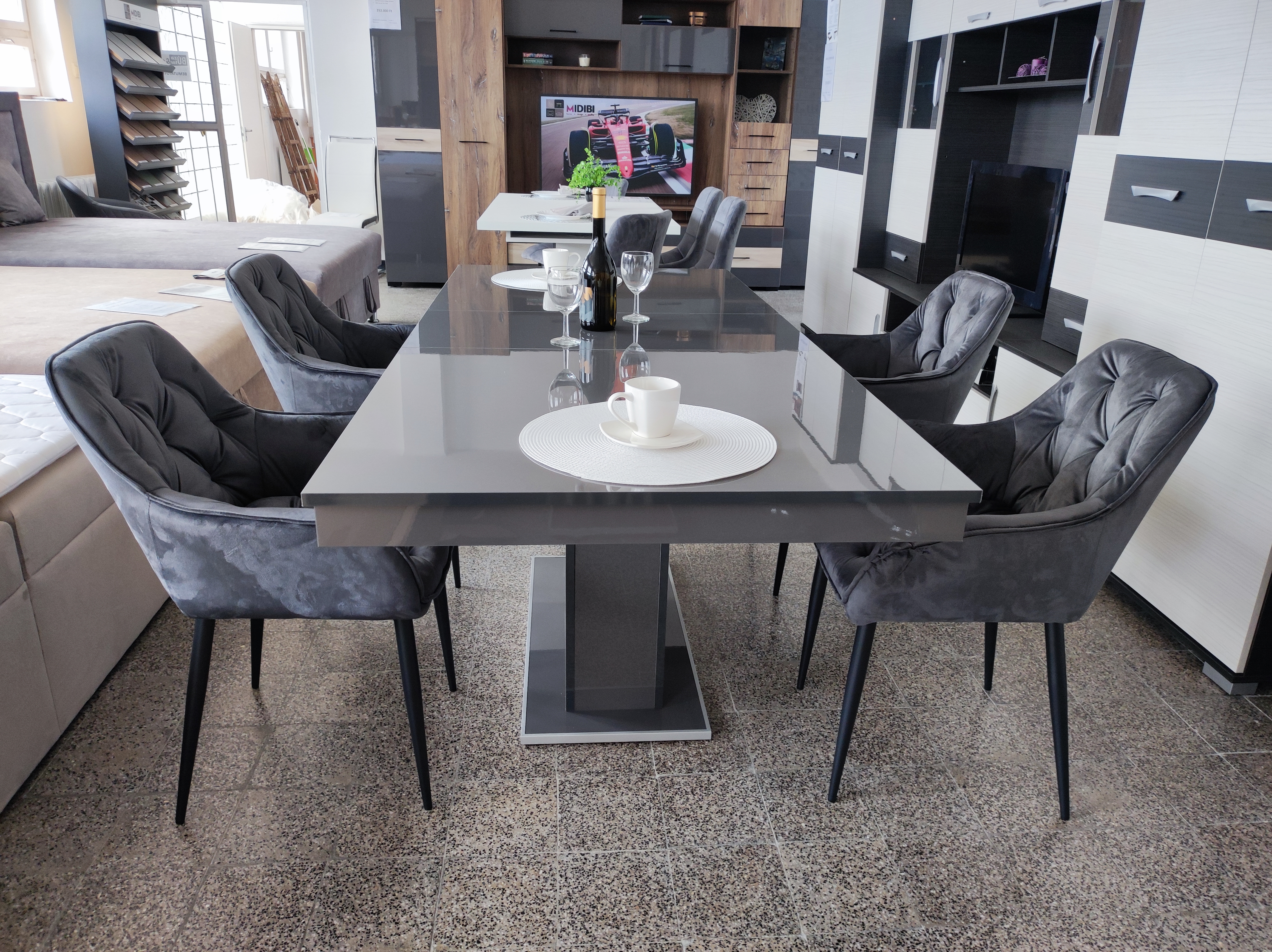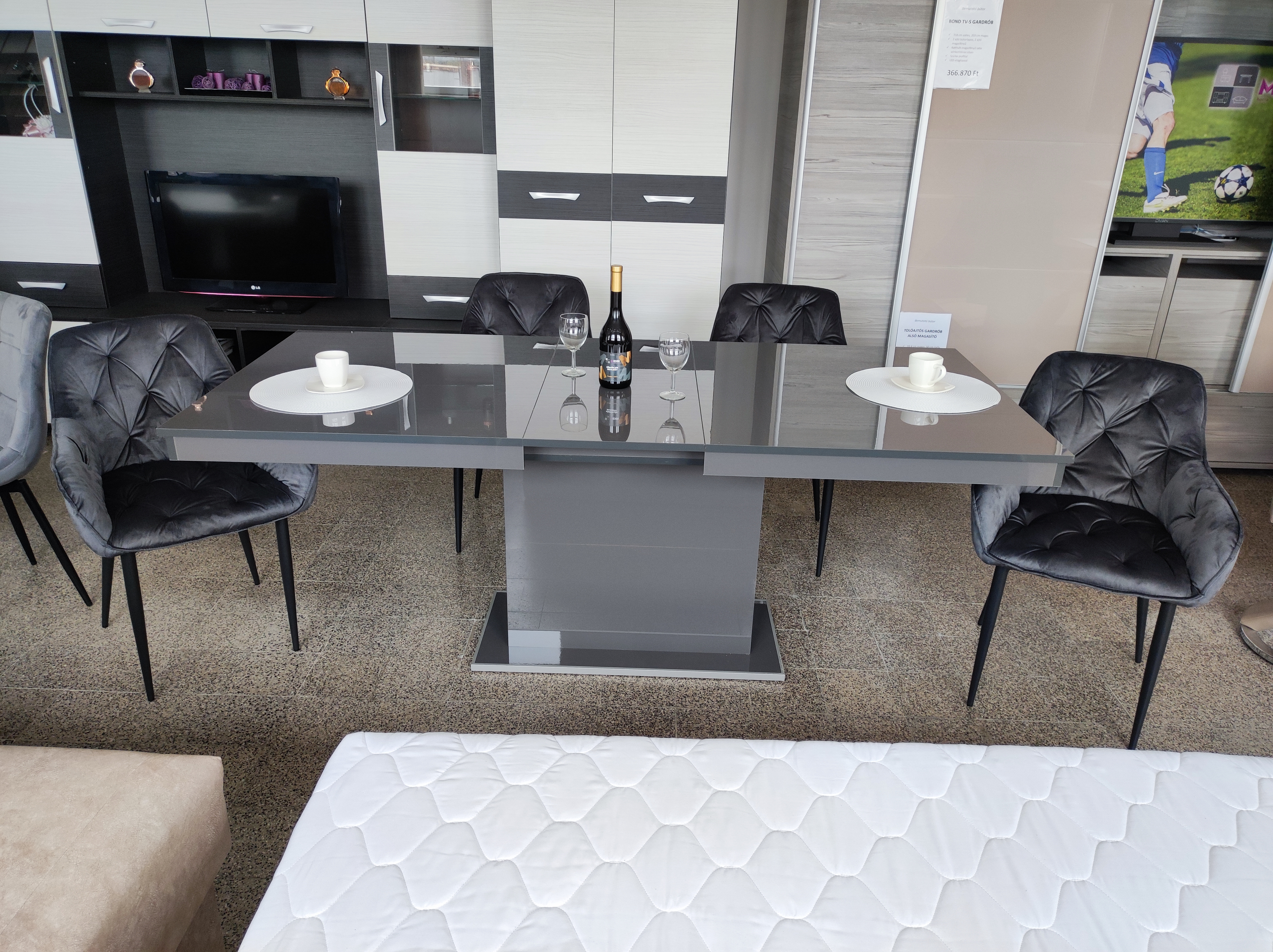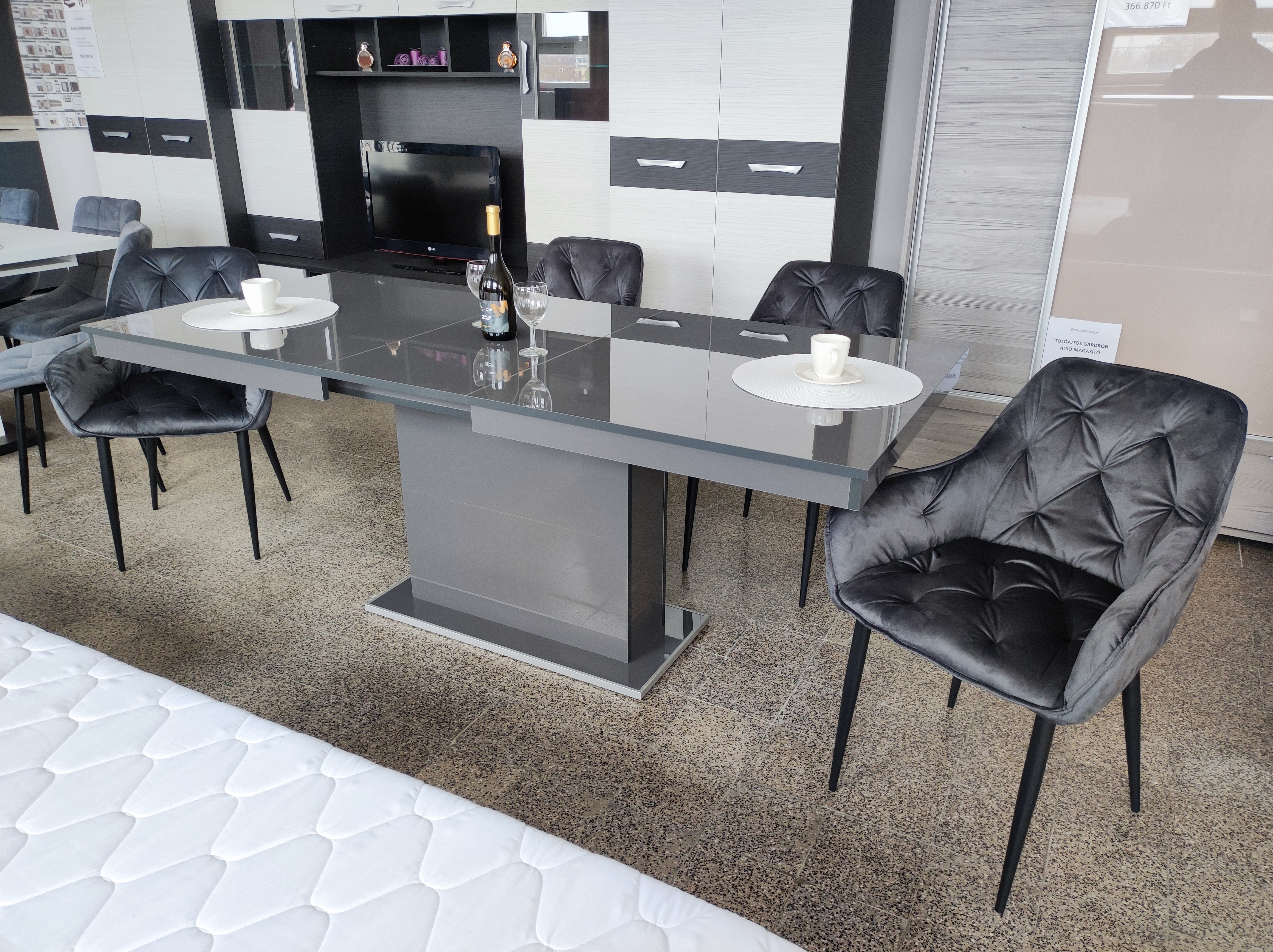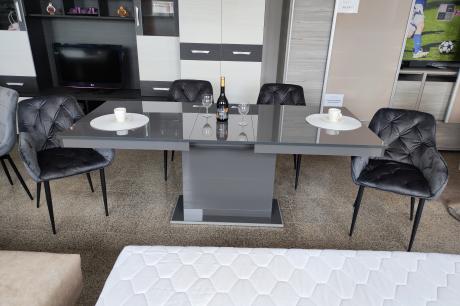 Ha trendi és látványos étkezőre vágyik az antracit színű, magasfényű Flóra asztal igazán jó választás. A váz, az asztallap és a vendéglap is magasfényű, amely remekül illik a letisztult formavilághoz. 160x85 cm-es mérete plusz 40 cm-rel toldható, ami vendégek fogadása esetén kimondottan praktikus lehet.