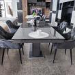 Az asztal 4 db Noel székkel egészül ki, mely fekete festett lábával, plüss, steppelt kápitozásával, grafit színével kiválóan passzol az asztalhoz. Az étkezőgarnitúra ideális választás azoknak, akik az időtálló és egyben stílusos darabokat részesítik előnyben.