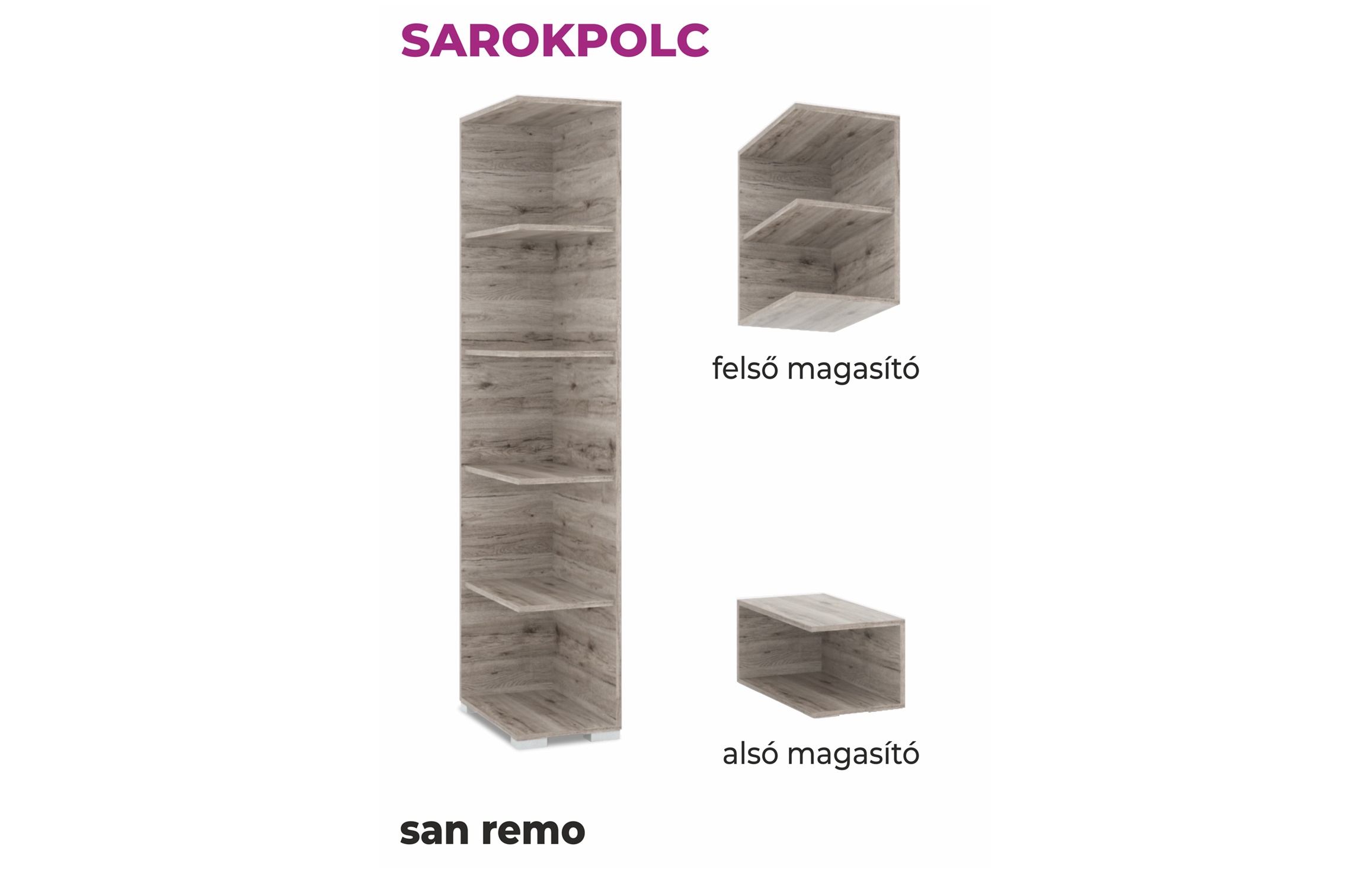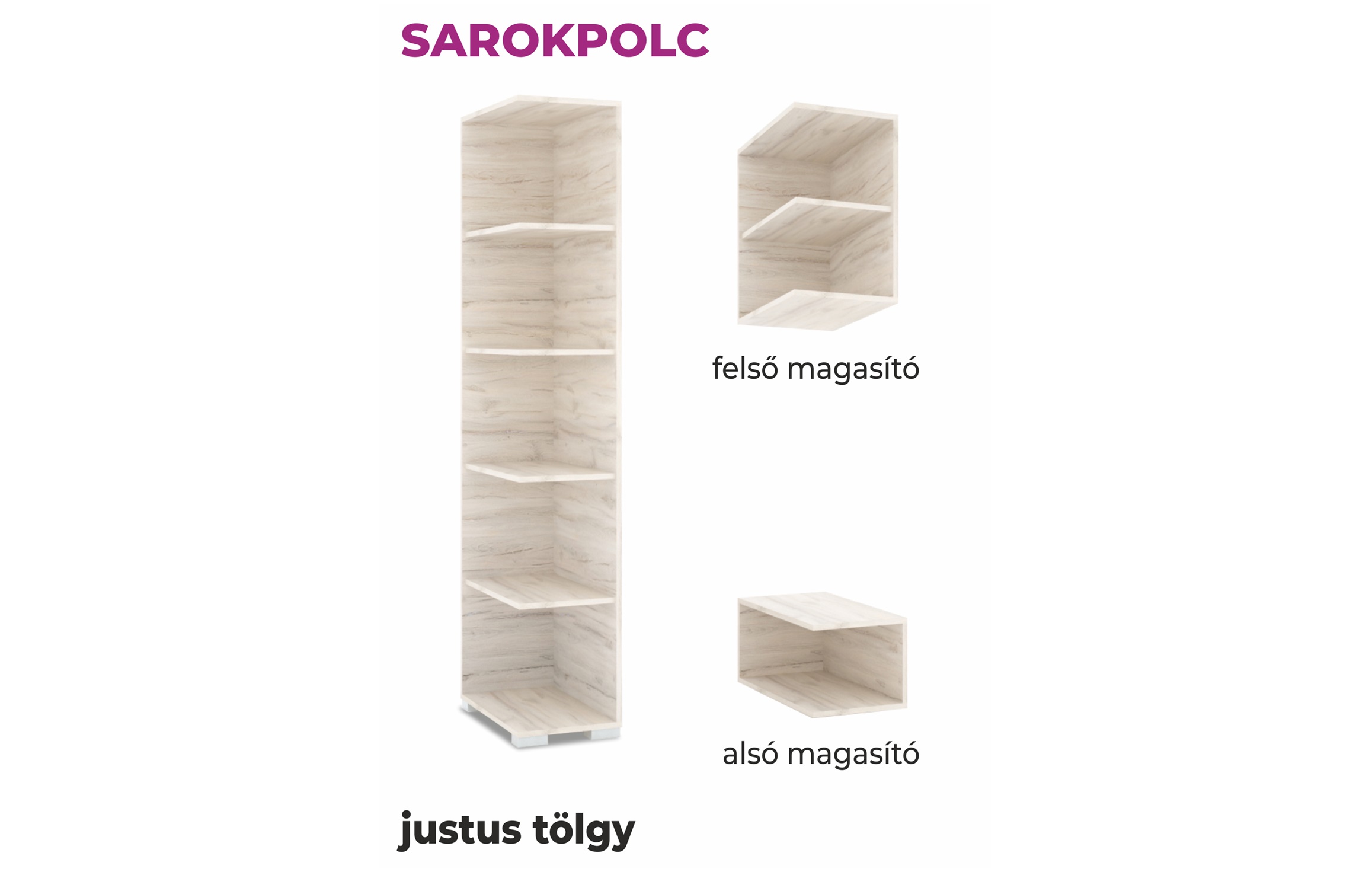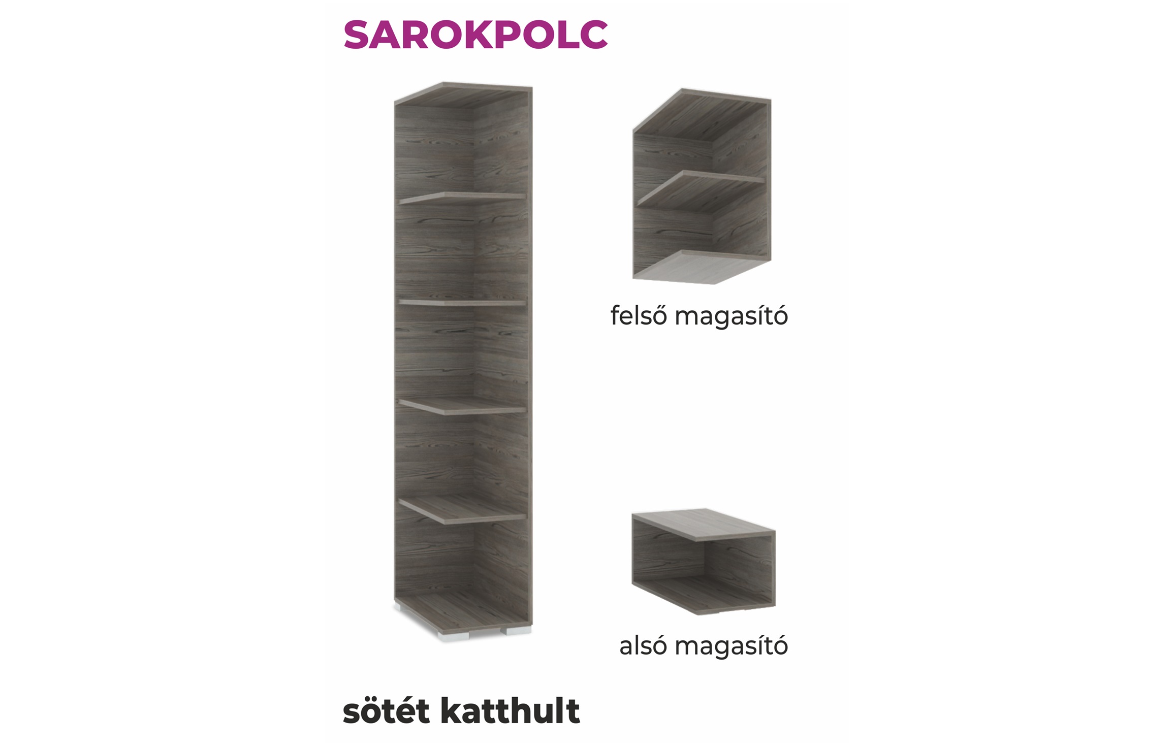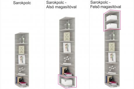 Opcionálisan rendelhető az összes tolóajtós gardróbokhoz, alsó (fiókos), és felső (tolóajtós) magasítóval szerelthez is. A szekrény mindkét oldalával kompatibilis. 14-féle színben érhető el, így könnyedén találhat az Ön gardróbjával harmonizáló darabot.